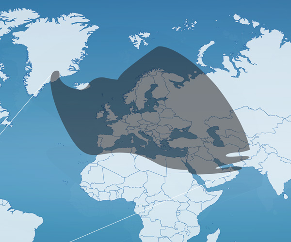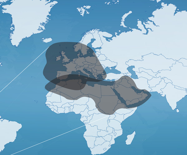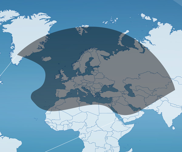 EUTELSAT 3D, delivers users powerful coverage of Europe and Middle East with North Africa (MENA region) for services that include, data networks, IP backbone connectivity and maritime applications.
